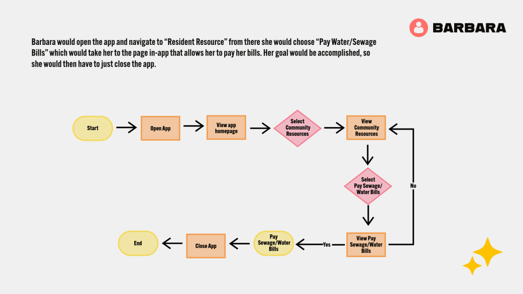 Barbara’s path was very straightforward, since she has one simple task: to pay her water and sewage bills. The app provides a very easy way to achieve this, it is just a few simple taps on the phone. No changes to the app UI had to be made for her to easily able to achieve her goal.